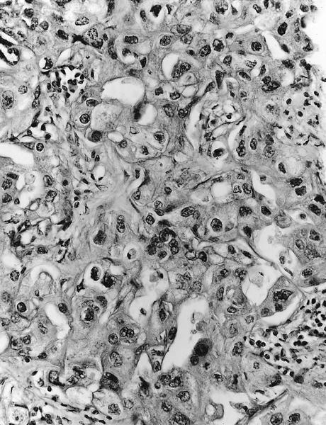 Fig 2: tumor composed of sheets and cords of large polyhedral