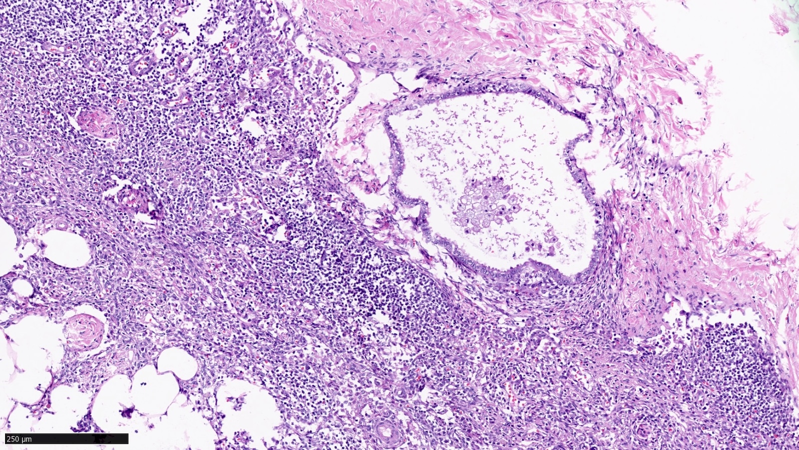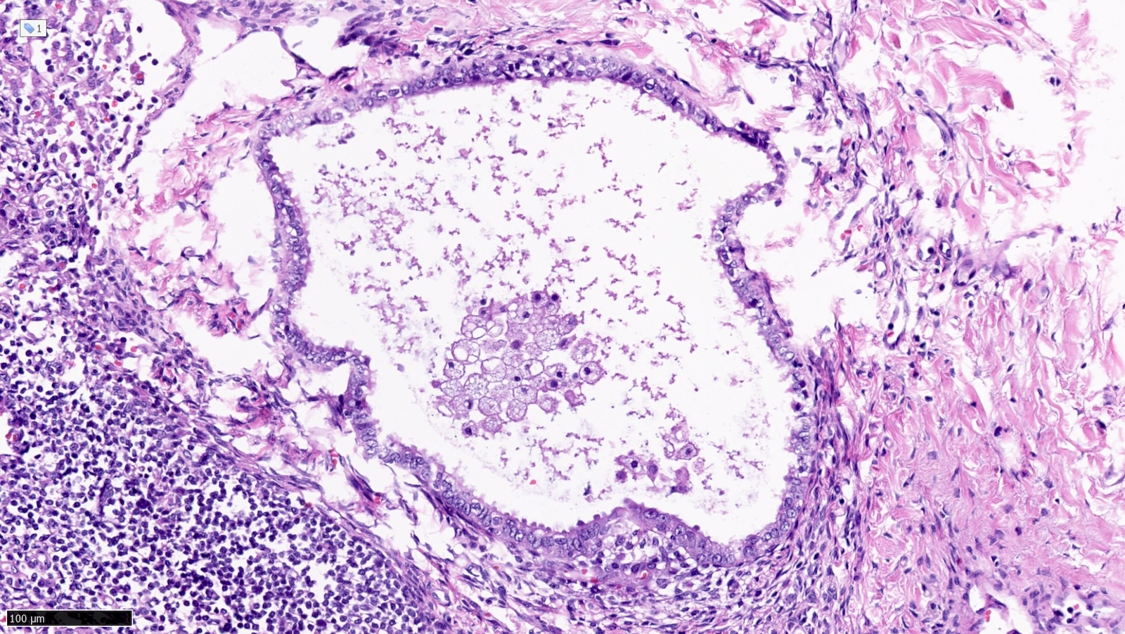 - These inclusions can be glandular (most common) or squamous epithelium lining cystic lumina
