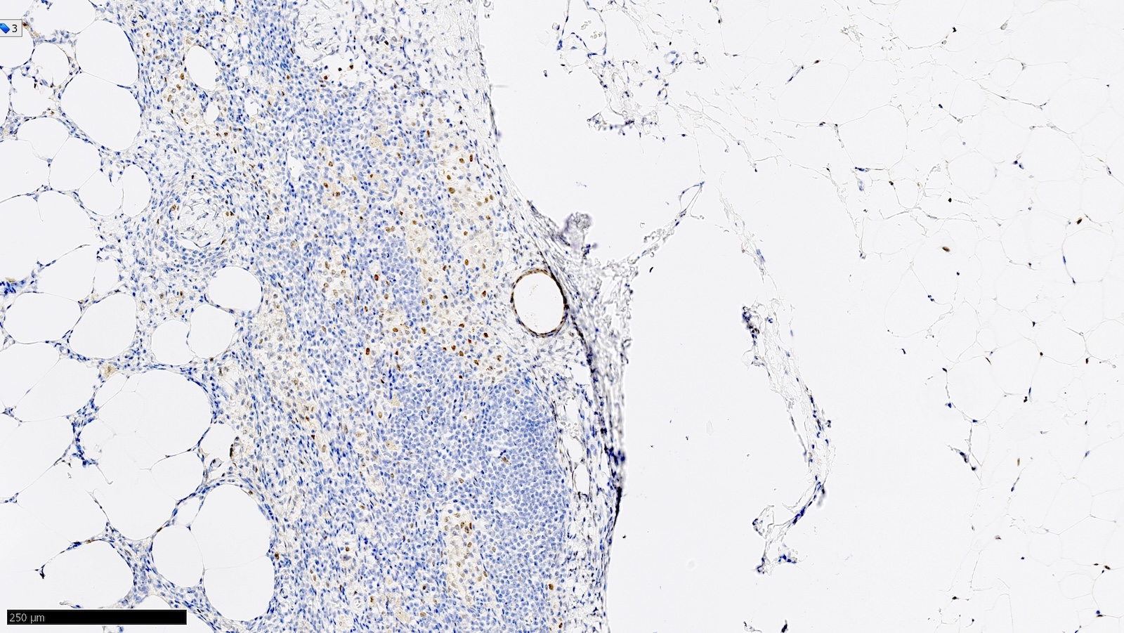 - Areas of carcinoma invading into the stroma in axillary adipose tissue, without residual nodal tissue, are considered to be positive lymph nodes