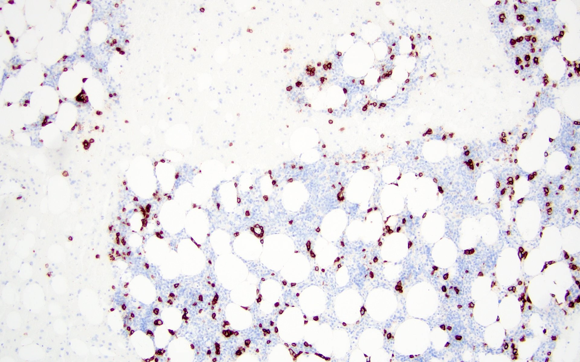 - Positive for CD138, CD38, restricted cytoplasmic light chain and negative for CD19