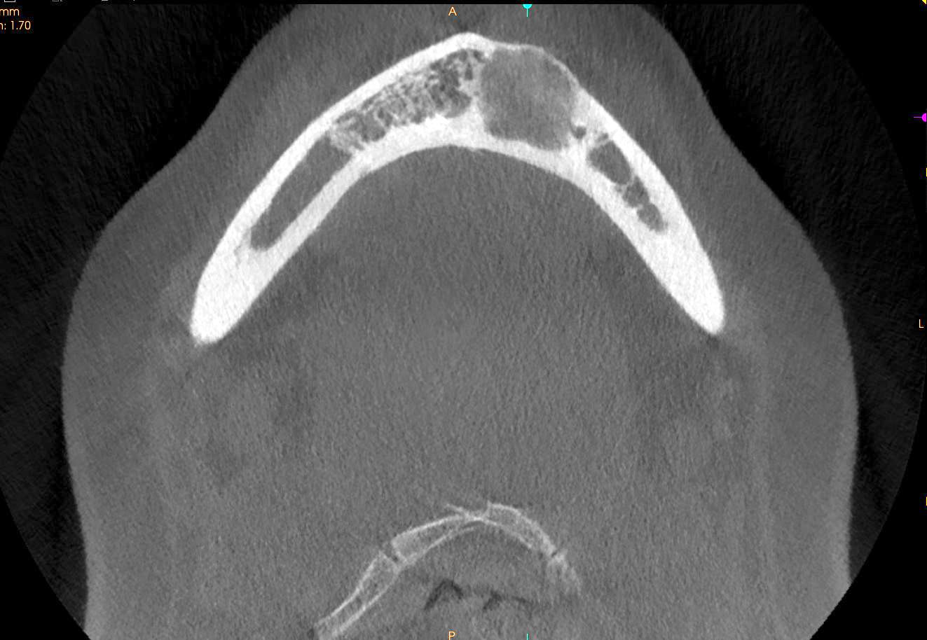 - Larger lesions show expansion, thinning and perforation of buccal and lingual cortex and involvement of the lower border of mandible (BMJ Case Rep 2020;13:e239286)
