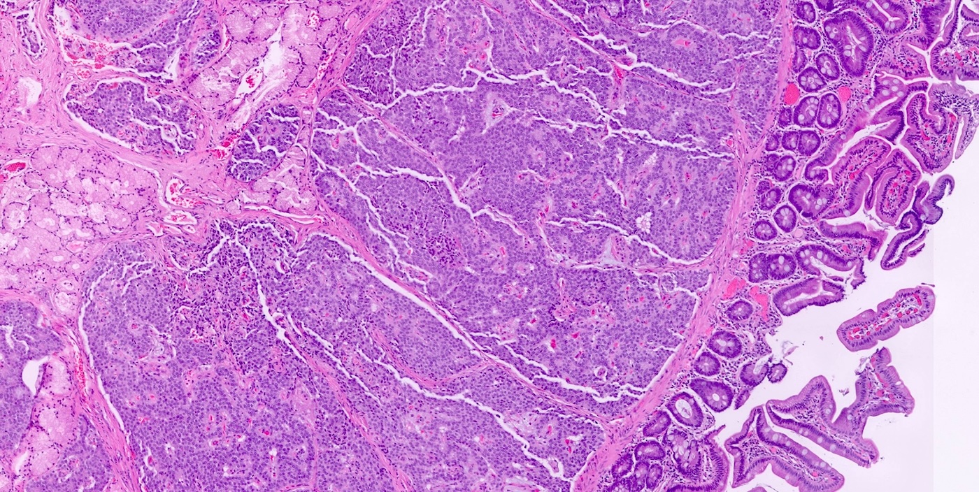 - Duodenal gastrinomas: small nests of well differentiated neuroendocrine cells producing gastrin, seen in Zollinger-Ellison syndrome