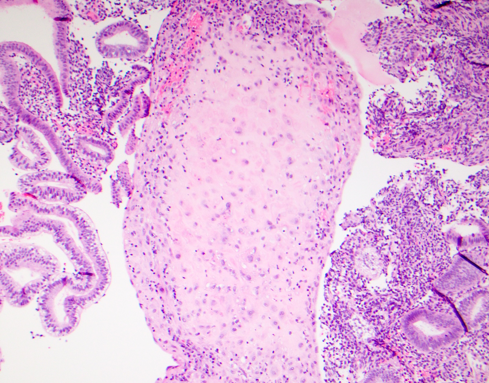 - Squamoid component of high grade serous carcinoma of ovary (50%) and squamous differentiation in endometrial carcinoma (100%) (Am J Surg Pathol 2023;47:967)