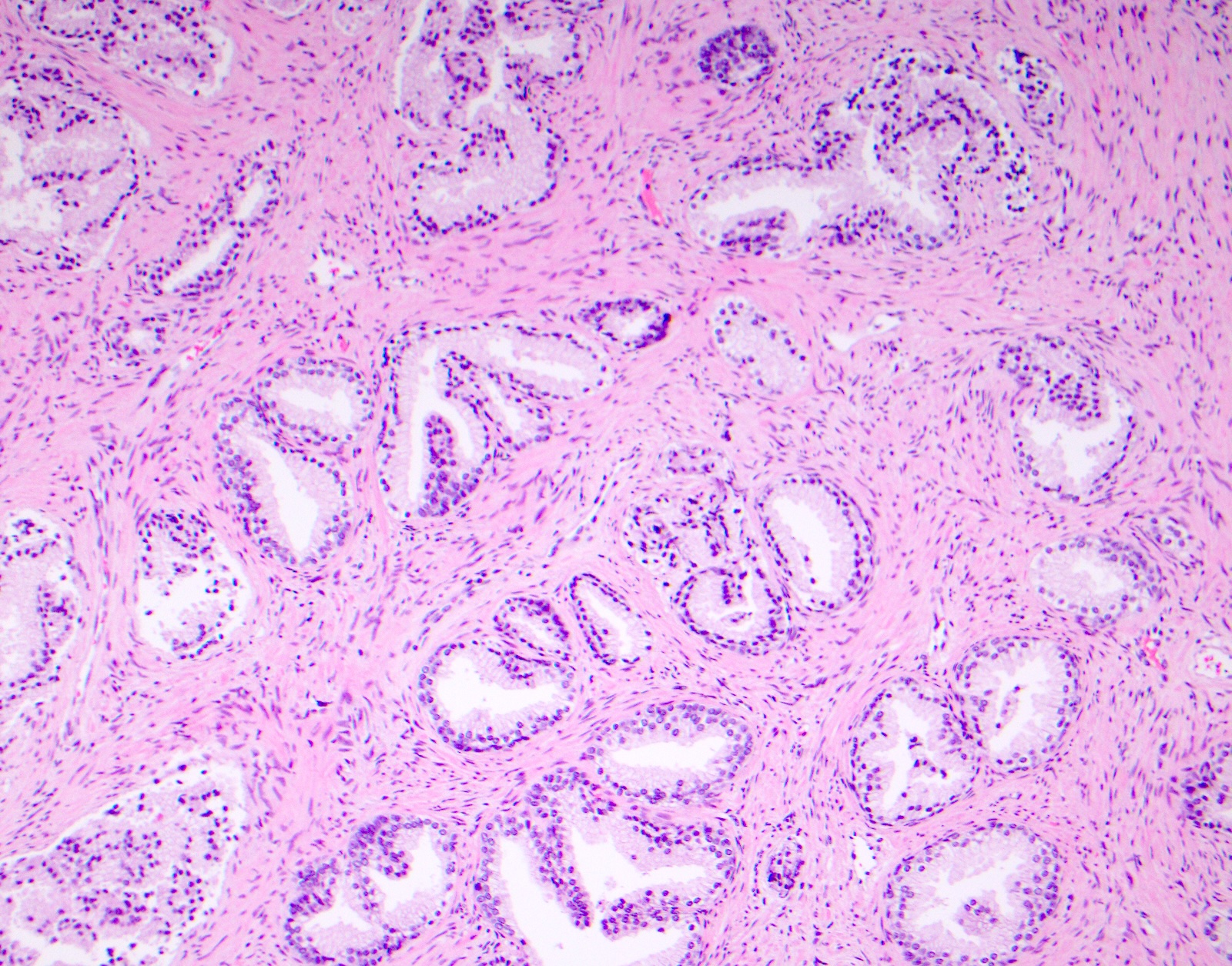 - Benign mimickers of prostate carcinoma, including atrophy (23%), atypical adenomatous hyperplasia (AAH) (50%), nephrogenic adenoma (75%) and mesonephric hyperplasia (66%) (Ann Diagn Pathol 2013;17:41, Semin Diagn Pathol 2005;22:88)